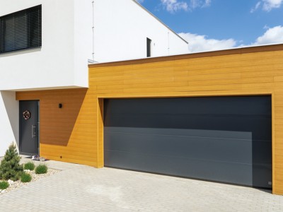 Завдяки своєму сучасному та розкішному вигляду цей дизайн воріт завойовує все більше шанувальників. Ворота з гладких панелей доповнюють сучасну архітектуру будівлі. Перевага - простота, практичність та легке обслуговування. Гладкий дизайн дозволяє застосовувати широкий спектр кольорів відповідно до шкали RAL, всіх імітацій деревини та кольорових плівок за допомогою технології ламінування. Цей тип панелей також найкраще підходить для друку за технологією DURA PRINT (Цифрового друку). Гладка панель ідеально підходить для використання декорів з нержавіючої сталі та різних форм дизайнерських вікон.